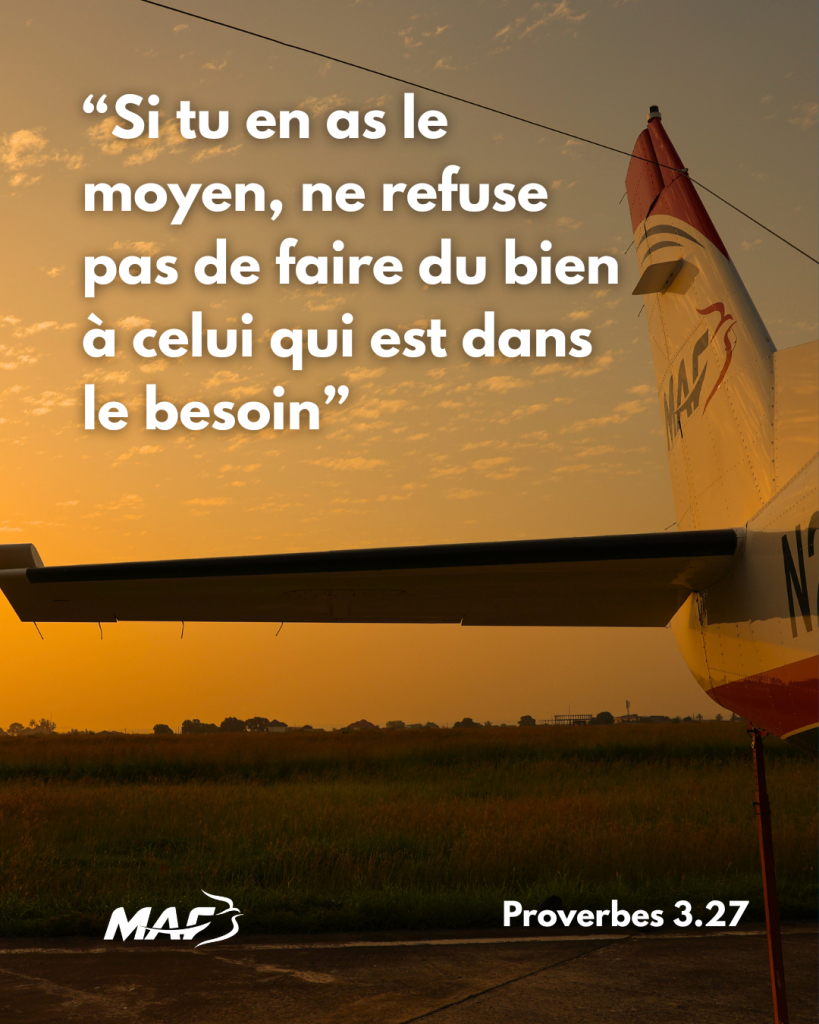 Mon but est de faire connaître MAF en France. Cette organisation est encore peu connue, alors qu’elle a un grand besoin de pilotes, de mécaniciens et d’autres équipiers francophones. Chaque fois que je présente la mission, je constate à quel point les personnes sont touchées et intéressées lorsqu’elles découvrent cette ONG. Mon désir est donc que le plus grand nombre en entende parler en France, afin que de nouvelles personnes s’impliquent et que MAF puisse continuer d’apporter aide, guérison et espoir aux plus isolés.
